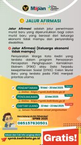 JUKNIS SPMB 2025 Diposkan pada 14 Mei 20258 Juli 2025 oleh AdminSDN8NGR https://sdn-ngronggo8.sch.id/wp-content/uploads/2025/05/BROSUR-SPMB-2025-KOTA-KEDIRI-scaled.png JUKNIS-SPMB-2025-KOTA-KEDIRI-PUBLISH-TTE F-PESERTA_DIDIK (1)